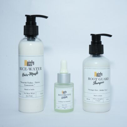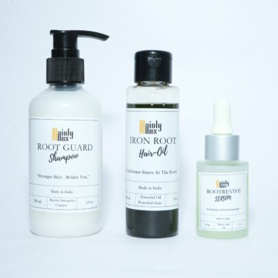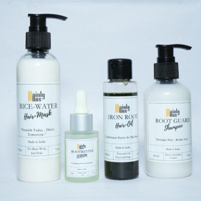 Combo: Root Guard Shampoo + Iron Root Hair oil + Rootrevive Serum+ Rice – Water Hair mask
